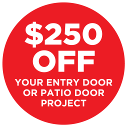 Need an upgrade to your front entry way or back patio? Now is the time to order - $250 off your purchase of a new entry door or patio door. Contact us for a free quote today!